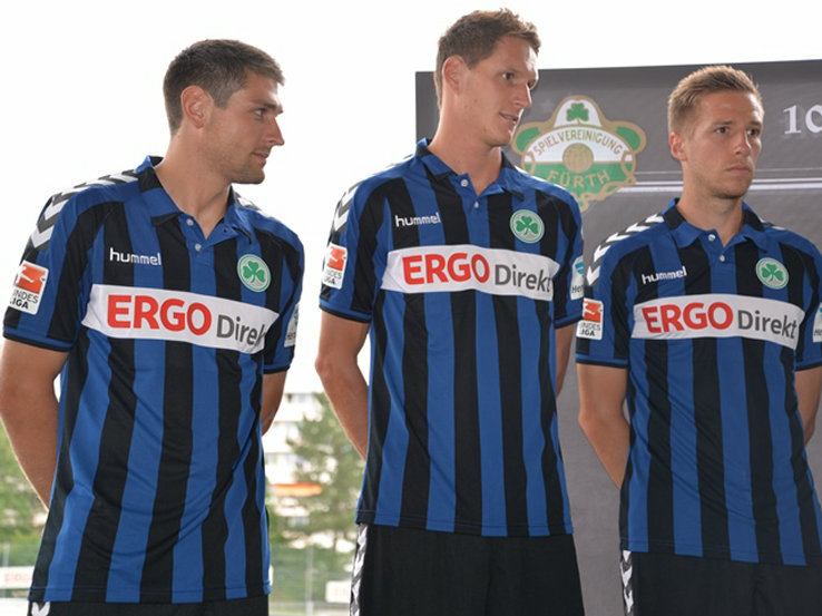 Neues Hummel SpVgg Greuther Fürth 14-15 Auswärtstrikot Veröffentlicht - Inspiriert von ihrem Trikot aus dem Jahre 1914, als Greuther Fürth die deutsche Meisterschaft gewann, ist das neue Greuther Fürth 14-15 Auswärtstrikot dunkelblau / schwarz gestreift.