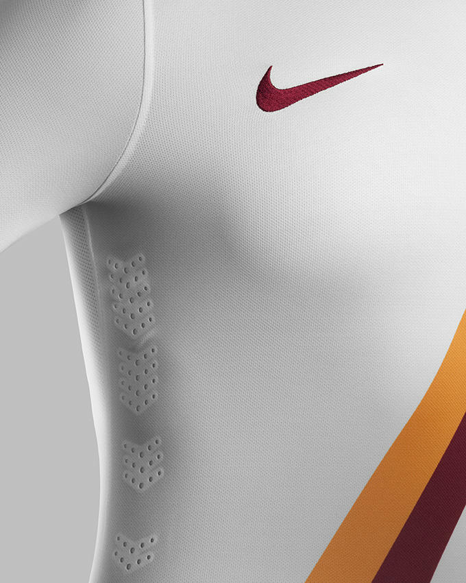 Wie beim Heimtrikot, ist innerhalb des Nackens ein rotes Wimpel mit der Aussage: “La Roma Non Si Discute Si Ama,” (‘Rom wird ohne Fragen geliebt’), das berühmte Motto, das die Rom Fans prägt.