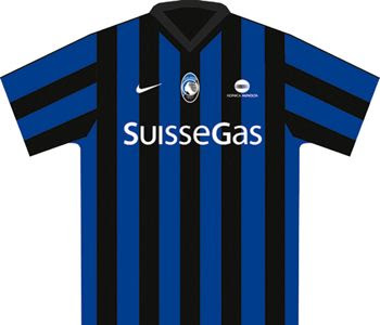 Basierend auf dem Nike Inter Stripe IV Template, weist das neue Nike Atalanta 2014-15 Heimtrikot einen schwarzen V-Kragen und das traditionelle Schwarz / Blau gestreifte Trikotdesign auf, das auf den Ärmeln fortgeführt wird.