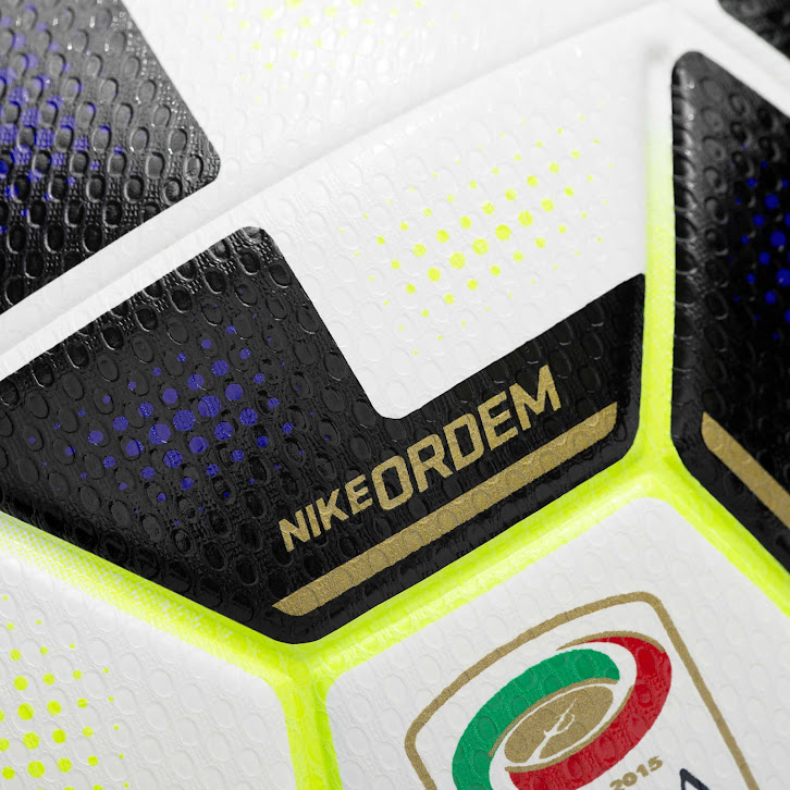 Ähnlich wie die anderen Nike Ordem Bälle, kommt der Serie A 14-15 Fußball mit der Hauptfarbe Weiß mit Grünen Punkten, um die Sichtbarkeit des Balls zu verbessern. Die Liga-spezifische Farbe des Fußballes ist Pink / Lila. Die perfekte Kugelförmigkeit erlaubt es dem Ball laut Nike "schneller, weiter und genauer zu fliegen".