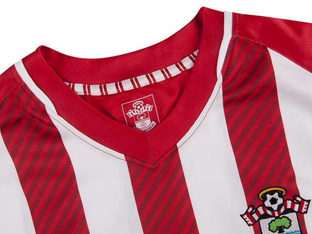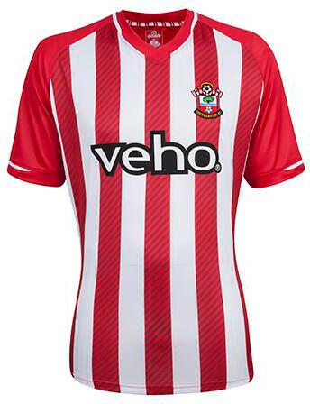 Das neue Southampton 14-15 Heimtrikot wurde vom Klub selbst entworfen, ein einzigartiges weiß / rot gestreiftes Trikotdesign aufweisend. Fünf vertikale rote Streifen wurden auf der weißen Vorderseite des Trikots platziert, während jeder rote Streifen kleine dunkelrote diagonale Nadelstreifen aufweist.