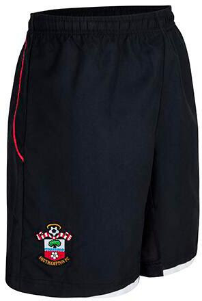 Die Hose des neuen Saints FC 2014-15 Heimtrikots ist schwarz mit einem roten Streifen, während die hauptsächlich roten Stutzen dunkelrote Streifen aufweisen.