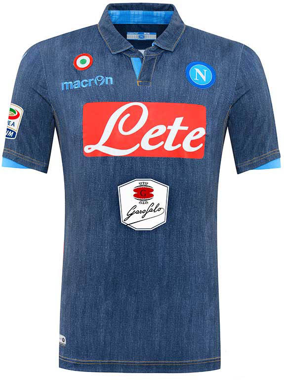 Macron überrascht erneut die Fußballwelt - Das neue Macron SSC Neapel 14-15 Auswärtstrikot kommt mit einem Denim Effekt, inspiriert von der Modewelt, nachdem die italienische Marke in der letzten Saison ein Tarnfarben Trikot veröffentlichte.