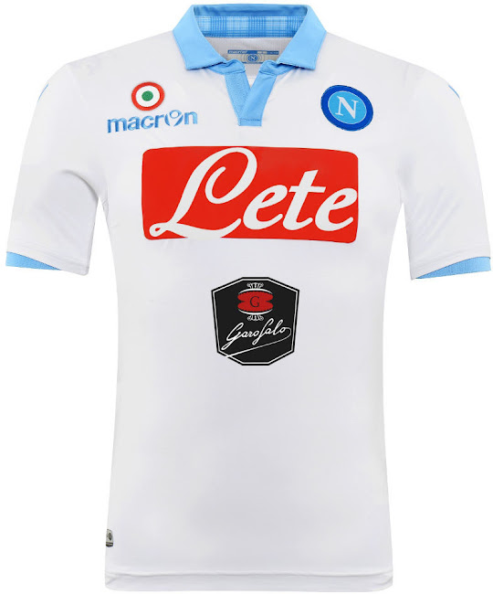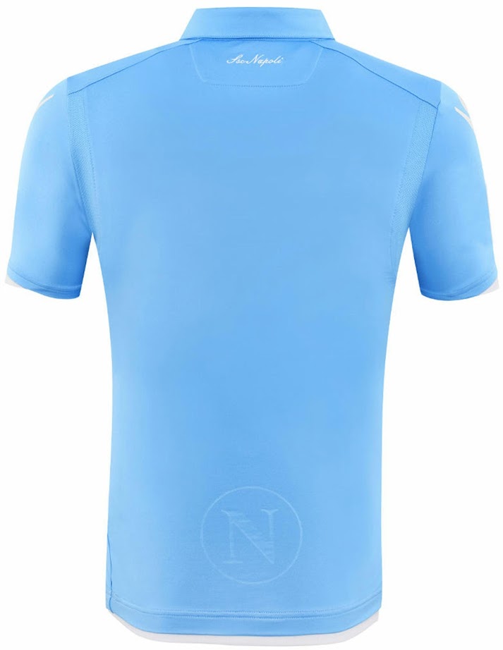 Ein spezieller Druck befindet sich innerhalb des Kragens des neuen Neapel 2014-2015 Ausweichtrikots, während der Name SSC Napoli auf der Rückseite unterhalb des Kragens auf Italienisch steht.