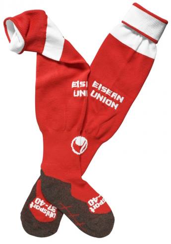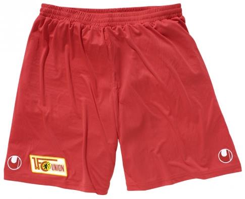Die Hosen und Stutzen des Union Berlin 2014-2015 Trikots sind rot mit weißen Applikationen.