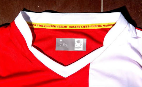 Das neue Union Berlin 14-15 Heimtrikot kommt mit einem auffälligen vertikalen weißen Streifen, der auf der linken Seite des Union Berlin 2014-2015 Trikots verläuft. Innerhalb des Kragens des neuen Union Berlin 14-15 Heimtrikots steht der Schriftzug "Unser Stolz-Unser Verein-Unsere Liebe-Unsere Mannschaft", während der Schriftzug "An der Alten Försterei" die Rückseite des Kragens ziert.