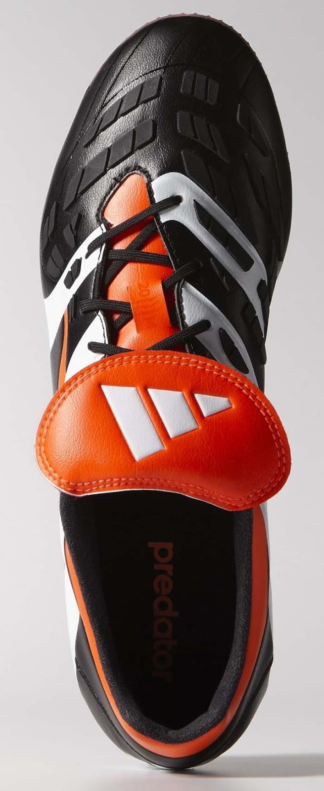 Wie der originale Adidas Predator Accelerator Schuh, weist das neue 2014 Remake das unkonventionelle Design der drei Adidas Streifen auf, eine asymmetrische Schnürung, neu gestaltete Rubber Elemente auf dem Obermaterial und auch die kultige Zunge.