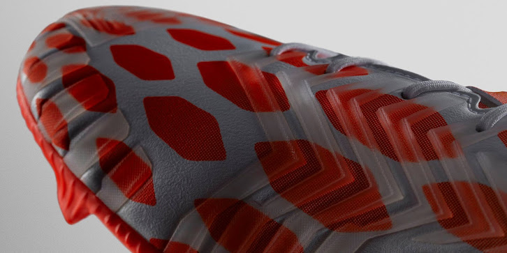 Der neue spezielle Adidas Predator Instinct 2014 Fußballschuh ist hauptsächlich weiß mit dem markanten roten Grafikmuster auf dem Obermaterial des Schuhs.