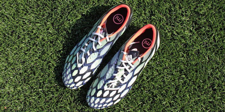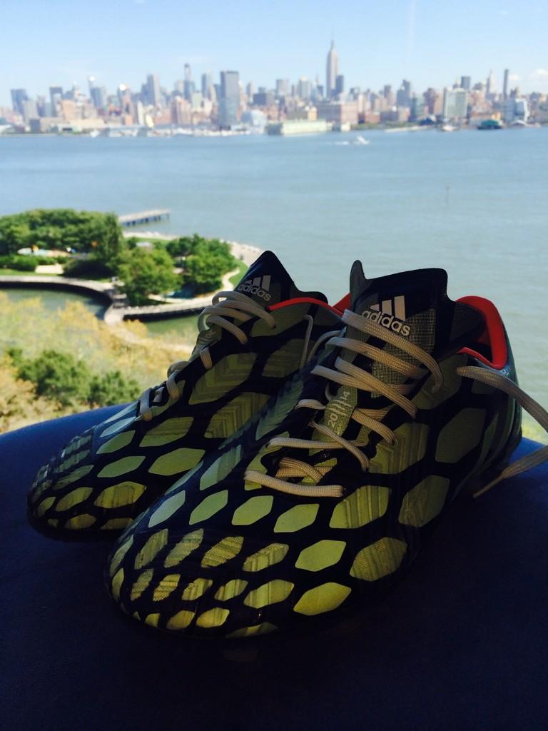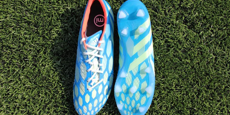 Der neue Adidas mi Predator New York Red Bulls Schuh basiert auf dem neuen 2014 Adidas Predator Instinct Fußballschuh. Der hauptsächlich hellblaue Schuh leuchtet in der Dunkelheit.