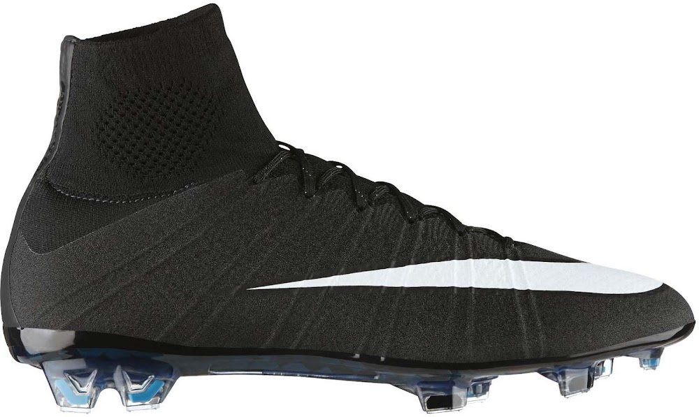 Die durchgehende Kohlenstofffaser Außensohle des neuen schwarzen Nike Mercurial Superfly Cristiano Ronaldo Gala Schuhes ist hauptsächlich schwarz / türkis, wodurch ein einzigartiger glamouröser Effekt mit hellblauen Stollen entstanden ist. Der neue schwarze Nike Mercurial Superfly Cristiano Ronaldo Fußballschuh ist ab dem 23. Oktober erhältlich.
