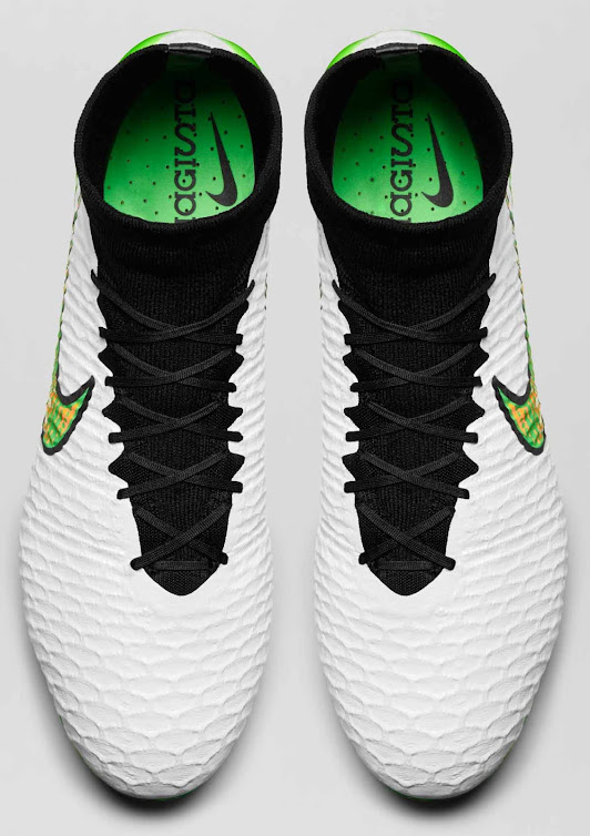 Der neue Weiß / Grün / Schwarz / Orange Nike Magista Obra Schuh wurde am 1. Dezember 2014 enthüllt, Teil des neuen Nike 2014-2015 White Fußballschuh Packs. Während Spieler wie Mario Götze und Joe Hart ab Dezember 2014 auf den grünen Nike Magista Obra Schuh umsteigen werden, werden nur wenige Spieler im weißen Nike Magista Obra Fußballschuh auflaufen.