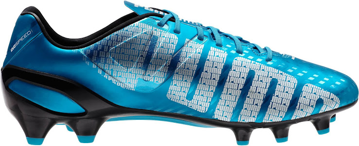 Die weiche einschichtige Mikrofaser-Oberseite wurde für enge Ballführung mit einem Grip-Tex Druck im Vorderfußbereich für bessere Ballkontrolle bei trockenen und nassen Wetterbedingungen hergestellt. Die hauptsächlich schwarze Außensohle des neuen blauen Puma evoSPEED 1.3 Fußballschuhes weist eine Mischung runder und länglicher Stollen für Naturrasen auf.