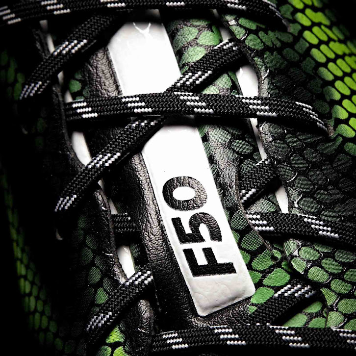 Der neue Schwarz / Grüne Adidas F50 Adizero 2015 Schuh weist ein spektakuläres Design mit einem einzigartigen grünen Grafikdruck auf der Oberseite auf, eine glänzende Schlangen-ähnliche Oberseite entwerfend, hergestellt für bessere Ballkontrolle bei allen Wetterbedingungen.