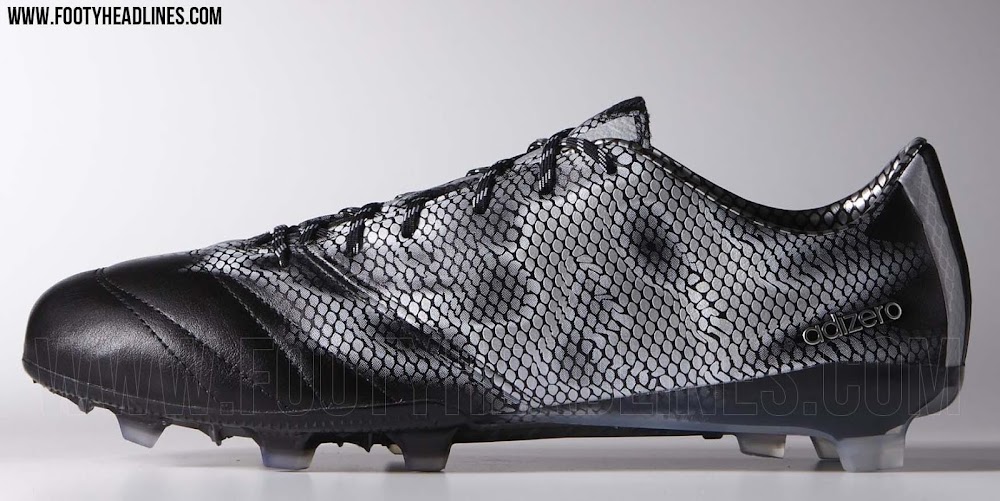 Auf der Oberseite des neuen schwarzen Leder Adidas F50 Adizero ist ein silberner Schlangenmuster-Druck, wodurch ein frischer neuer Look entstanden ist.