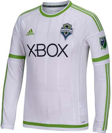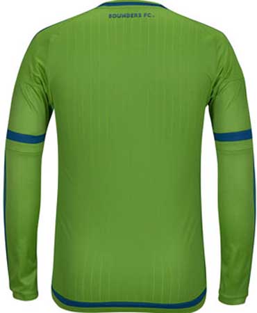 Das neue Seattle Sounders 2015 Trikot ist grün / dunkelblau mit einem weißen Xbox Sponsorenlogo auf der Vorderseite. Während das letzte Seattle Sounders Heimtrikot eine hellere blaue Zweitfarbe aufwies, kombiniert Adidas das 2015 Seattle Sounders Trikot mit dunkelblauen Applikationen. Auf der Vorderseite des neuen Heimtrikots sind hellere grüne Nadelstreifen.