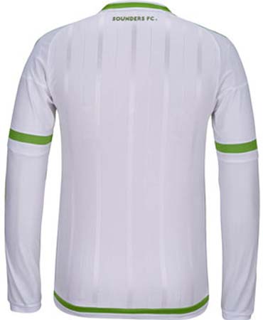 Das neue Seattle Sounders 2015 Trikot ist grün / dunkelblau mit einem weißen Xbox Sponsorenlogo auf der Vorderseite. Während das letzte Seattle Sounders Heimtrikot eine hellere blaue Zweitfarbe aufwies, kombiniert Adidas das 2015 Seattle Sounders Trikot mit dunkelblauen Applikationen. Auf der Vorderseite des neuen Heimtrikots sind hellere grüne Nadelstreifen.
