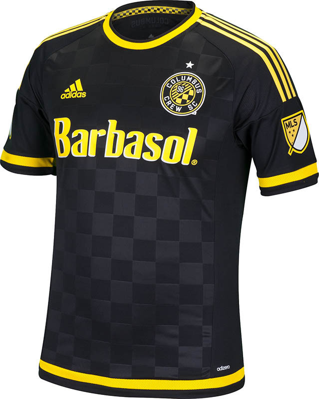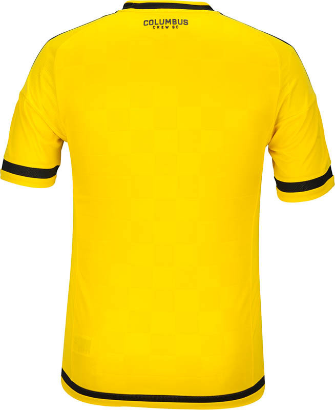 Innerhalb des Kragens des neuen Columbus 2015 Trikots befindet sich ein schwarz / gelb kariertes Design, inspiriert vom Vereinswappen, während der Vereinsname auf der Rückseite unterhalb des Rundhalskragens platziert ist.
