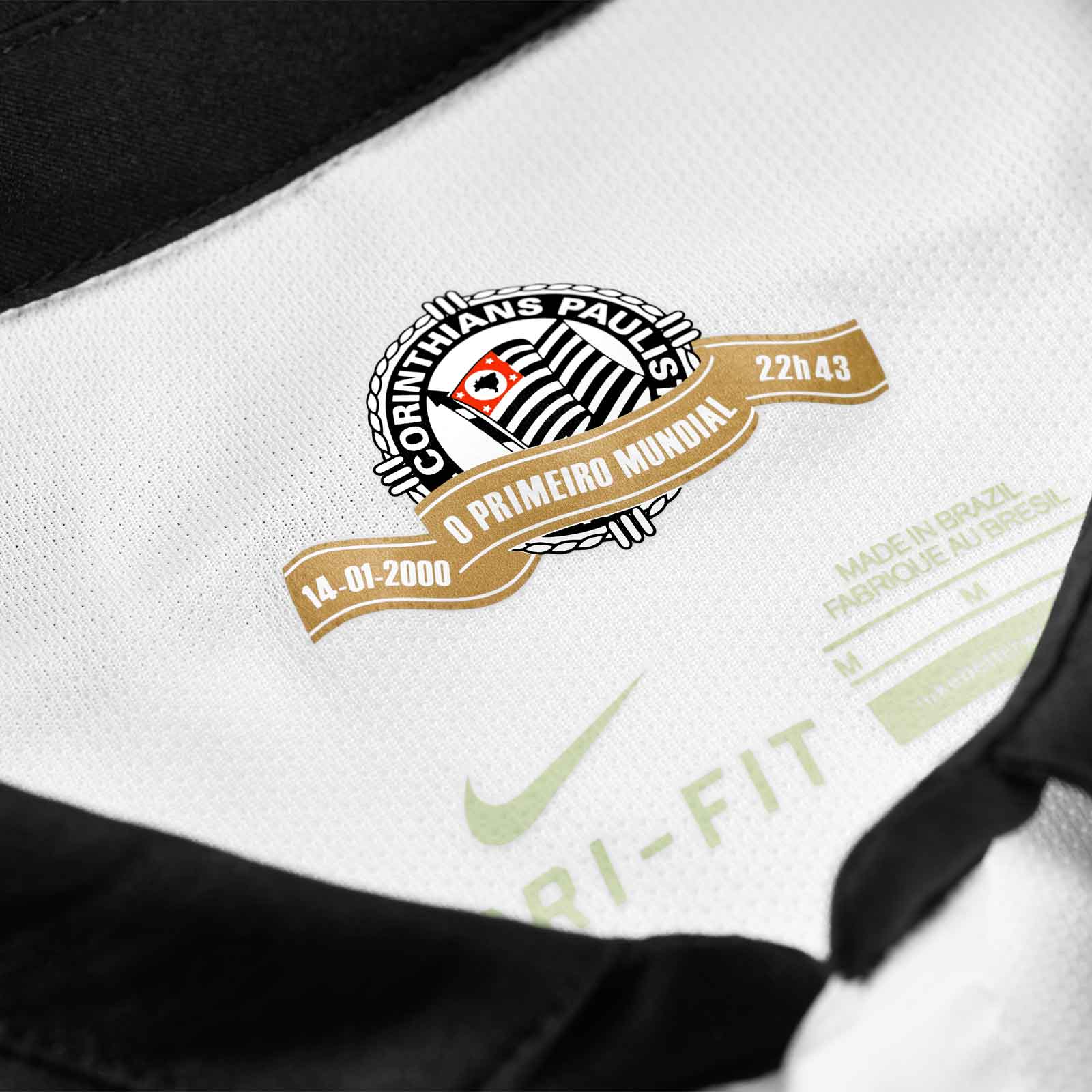 Das Corinthians 15-16 Trikot kommt mit einem klassischen schwarzen Kragen, während ein spezielles Logo, das den Gewinn der ersten FIFA Klub-WM 2000 ehrt, innerhalb des Kragens platziert wurde.