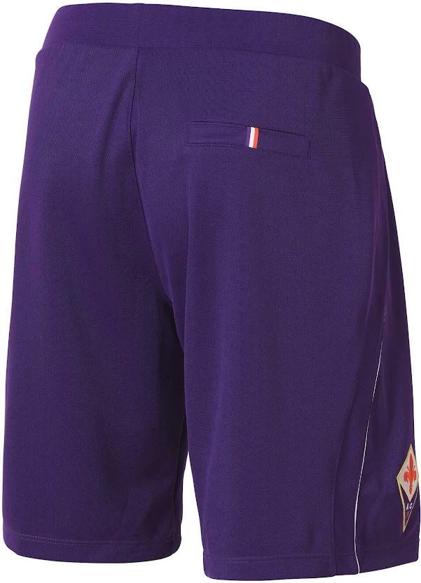 Lila Hosen und Stutzen mit weißen Details komplettieren das neue AC Florenz 15-16 Heim-Trikot.