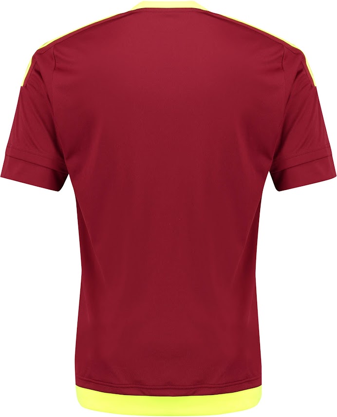 Das burgunderrote Venezuela 2015 Heimtrikot weist gelbe Designelemente für einen frischen neuen Look auf.