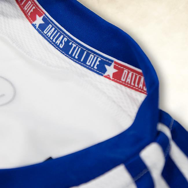 Das neue FC Dallas 2015 Auswärtstrikot verwendet den selben Kragen wie das FC New York City 2015 Auswärtstrikot und das Portland Timbers 2015 Heimtrikot. Innerhalb des Kragens des neuen FC Dallas 2015 Auswärtstrikots ist das Vereinsmotto "Dallas 'Til I Die" ("Dallas Bis Ich Sterbe"). Auf der Rückseite unterhalb des Kragens sind die Initialien "LH", um den ehemaligen FC Dallas Besitzer, Lamar Hunt, zu ehren.