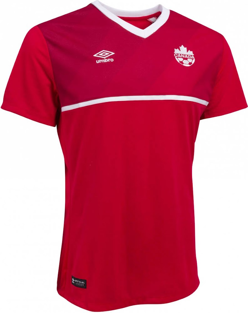 Die Männer Kanada Nationalmannschaft debütierte das modische Umbro Kanada Heimtrikot am 27. März im Freundschaftsspiel gegen Guatemala, während das Frauen Kanada Team das Trikot während der 2015 FIFA Frauen-WM in Kanada tragen wird.