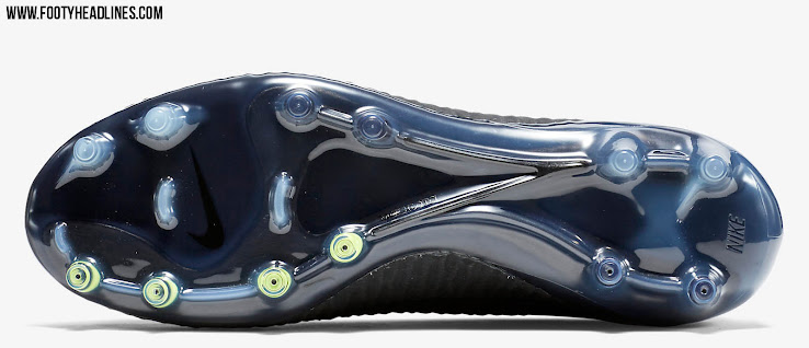 Während die Oberseite des neuen Black-Out Nike Magista Obra Fußballschuhs ein einfarbiges Design aufweist, sind die Innensohle und vier Stollen der neuen reflektierenden Blackout Nike Magista Schuhe gelb. Der Swoosh weist eine reflektierende Umrandung auf, um im Rampenlicht herauszuragen.