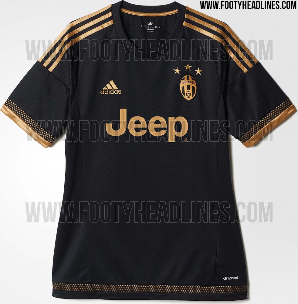 Wir wissen, dass das neue Adidas Juventus 2015-16 Drittes Trikot einen Farbverlauf vom schwarzen Trikot zu weiß / goldenen Stutzen haben wird, inspiriert vom Juventus Stadium.