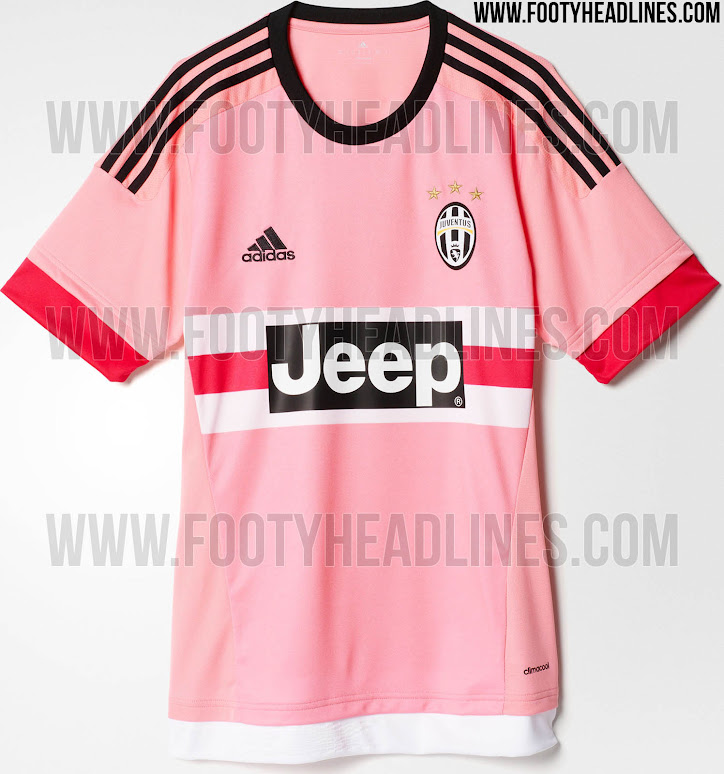 Das neue Adidas Juventus 2015-2016 Auswärts-Trikot kommt mit Juventus ursprünglicher Farbe für das Heimtrikot, ein blasses Pink. Juventus verwendete in den ersten Jahren von 1897 bis 1903 ein pinkes Heim-Trikot, bevor sie auf das kultige schwarz / weiße Streifendesign wechselten.