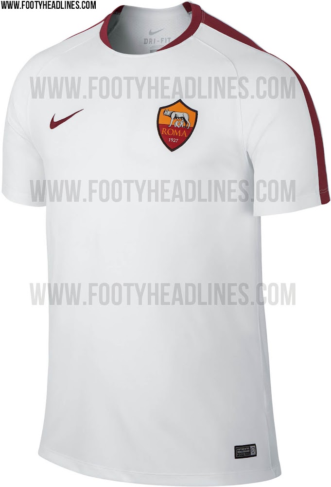Das neue Nike AS Rom 2015-16 Trainings-Trikot ist weiß mit roten Akzenten, basierend auf Nikes 15-16 Trainings-Trikot Template, das auch für die 2015-16 Barcelona Training-Trikots verwendet wird.