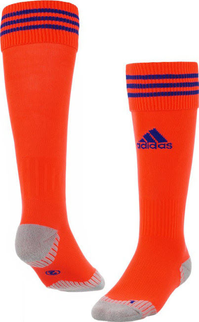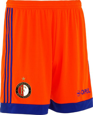 Orange Hosen und Stutzen mit blauen Applikationen komplettieren das neue Adidas Feyenoord 2015-16 Auswärts-Trikot.