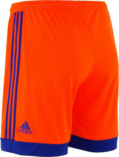 Orange Hosen und Stutzen mit blauen Applikationen komplettieren das neue Adidas Feyenoord 2015-16 Auswärts-Trikot.