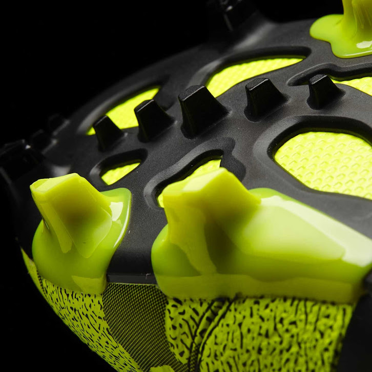 Die Außensohle der neuen Adidas X Leder-Fußballschuhe wurde für Naturrasen und Kunstrasen hergestellt. Die Außensohle der Adidas X 2015-2016 Lederschuhe, die das selbe Design wie die synthetische Version aufweist, hat dreieckige Stollen für sofortige Beschleunigung mit einer zweiten Ebene Stollen.