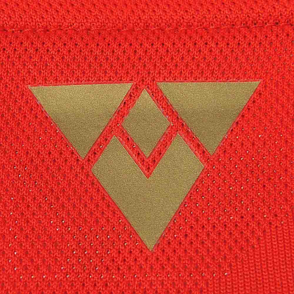 Das neue Arsenal 15-16 Trainings-Trikot ist hauptsächlich rot mit dunkelblauen und weißen Akzenten. Ein dunkelblauer Streifen verläuft auf beiden Ärmeln des roten Arsenal 2015-16 Trainings-Trikots.