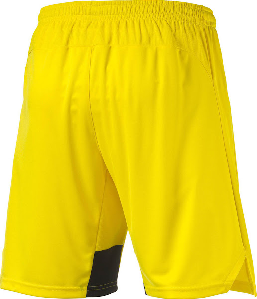 Einfache gelbe Hosen und Stutzen mit subtilen schwarzen Akzenten vervollständigen das neue Borussia Dortmund Europa League Trikot von Puma.