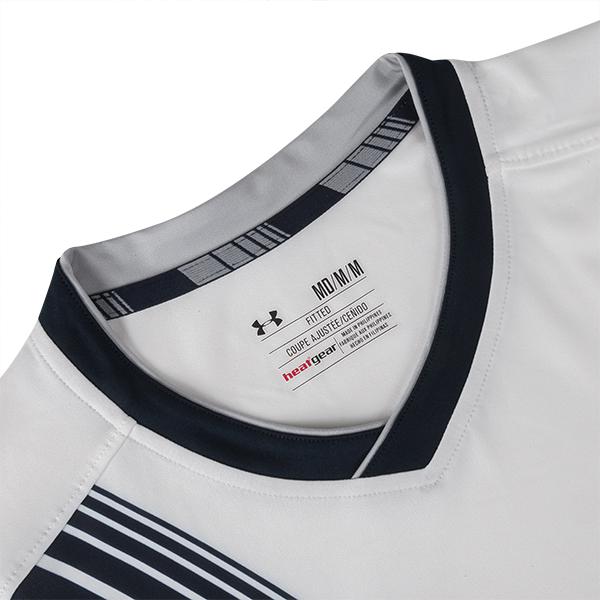 Under Armour kombiniert die traditionellen Farben Weiß und Dunkelblau mit hellgrauen Details auf dem V-Kragen und an den Ärmelenden, nachdem das letztjährige Heimtrikot gelbe Applikationen aufwies.