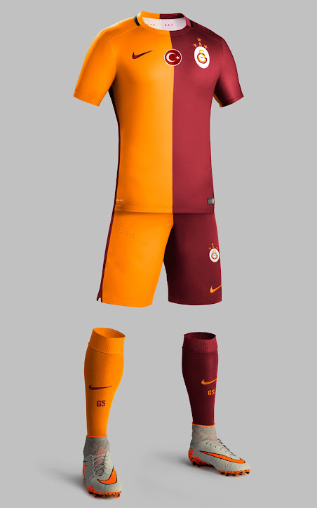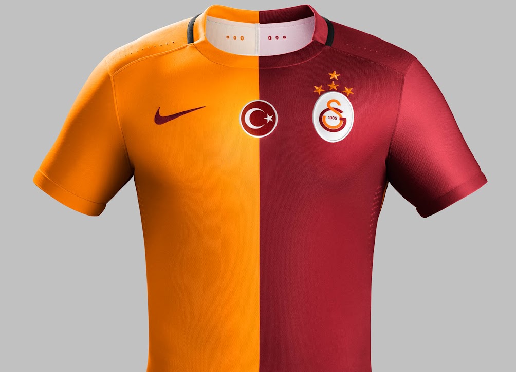 Das neue Galatasaray 2015-16 Trikot wird von Nike hergestellt und kommt mit einem Hälftendesign in den Farben Rot und Orange, das kultige Trikot-Design des Klubs. Im Gegensatz zu vorherigen Galatasaray Trikots von Nike, wird das Design des neuen Galatasaray 2015-2016 Trikots auf den selben Ärmeln fortgeführt und nicht entgegengesetzt.