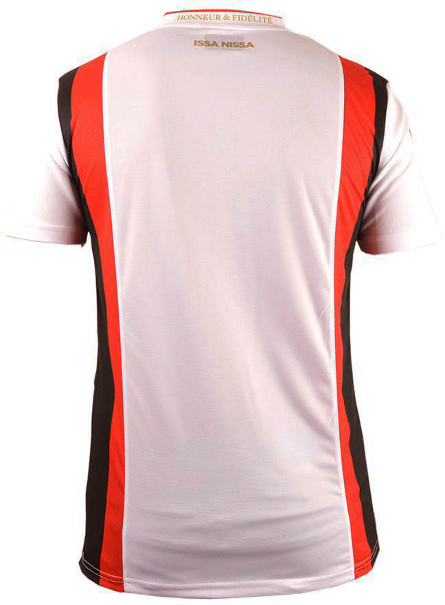 Ähnlich wie Nices 1974-75 Auswärts-Trikot und das Nice 2004 Trikot anlässlich des 100-jährigen Bestehens weist das neue Nice 2015-2016 Trikot zwei gewagte rot / schwarze Streifen auf, die auf der Seite des Trikots verlaufen.