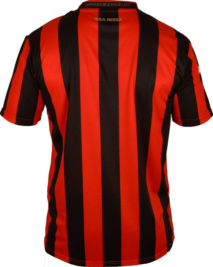 Das neue Nice 15-16 Heim-Trikot weist die klassischen rot / schwarzen vertikalen Streifen auf der Vorder- und Rückseite des Trikots auf. Im Vergleich zu dem letztjährigen Nice Trikot, sind die Streifen des neuen Nice 2015-16 Trikots dünner und weisen ein traditionelleres Design auf.