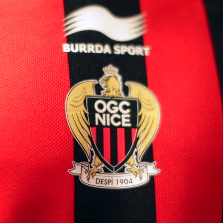 Das Burrda Logo und das OGC Nice Wappen sind zentral auf dem neuen Nice Trikot platziert. Das Nice 15-16 Trikot weist einen rot / schwarzen V-Kragen auf, während die Rückseite des Kragens mit dem Schriftzug "Honneur & Fidélité" ("Ehre und Loyalität") und dem Slogan "Issa Nissa" kommt.