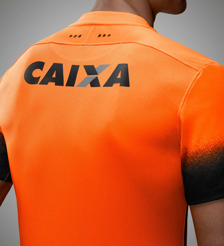 Orange und Schwarz. Das neue Corinthians 15-16 Trikot, das Nikes Design der 15-16 Ausweichtrikots folgt, kommt in einem markanten Orange mit Akzenten in Schwarz.