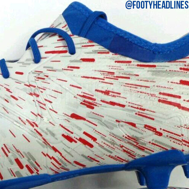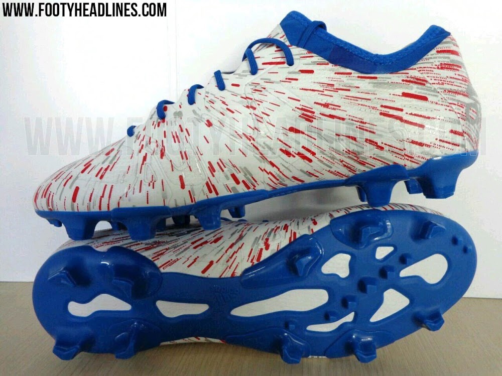 Nur ein einziges Paar weltweit. Die spektakulären Adidas X 15.1 Prototyp Schuhe haben ein einzigartiges Design in den Farben Weiß, Rot und Blau.
