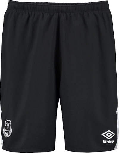 Es weist den schwarzen Schriftzug Umbro auf beiden Ärmeln und ein einfarbiges dunkelblaues Vereinswappen auf. Das letztjährige weiße Everton Trikot wurde mit auffälligen lila Applikationen kombiniert.