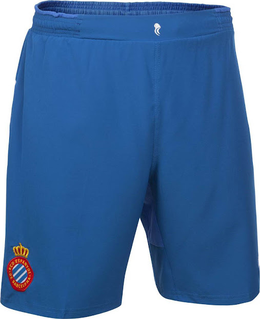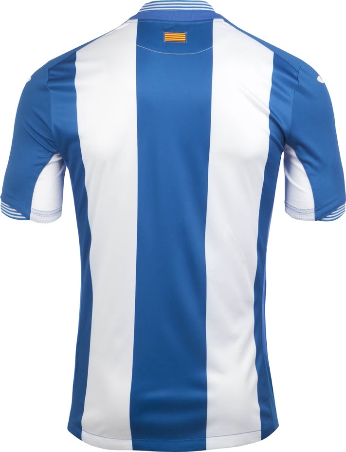 Die katalanische Flagge ist auf der oberen Rückseite des Joma RCD Espanyol 15-16 Trikots platziert, das mit blauen Hosen und weißen Stutzen komplettiert wird.