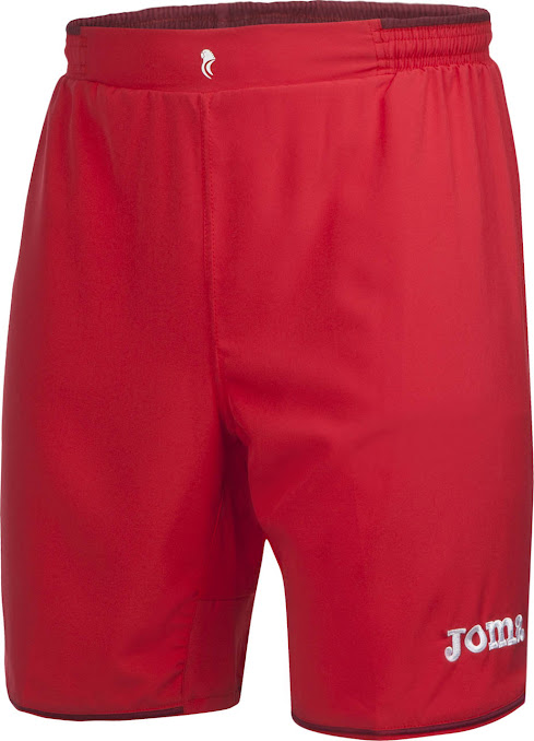 Rote Hosen und Stutzen mit kastanienbraunen Details werden mit dem Espanyol Barcelona 15-16 Trikot kombiniert. Ein Papagei befindet sich auf der oberen Vorderseite der Hose des "Pericos" (Papageien) 15-16 Trikots.
