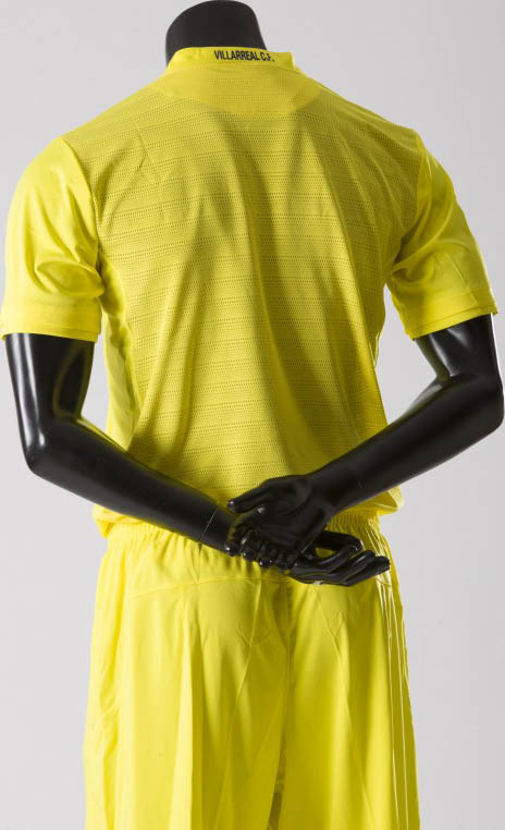 Subtile Meshquerstreifen sind auf der Rückseite des Villarreal 15-16 Trikots sichtbar.