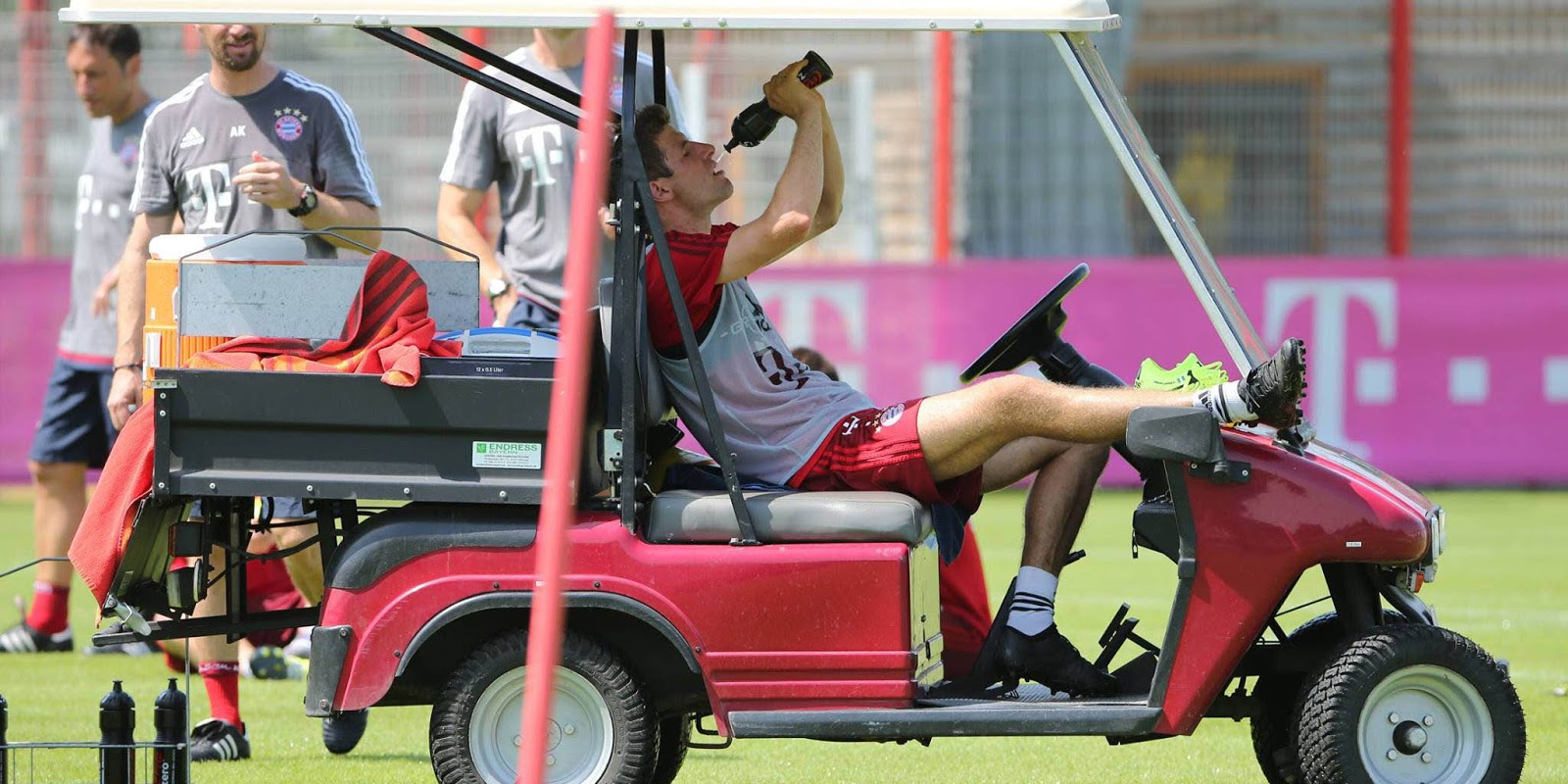 Thomas Müller trainiert in Black-Out Adidas Schuhen