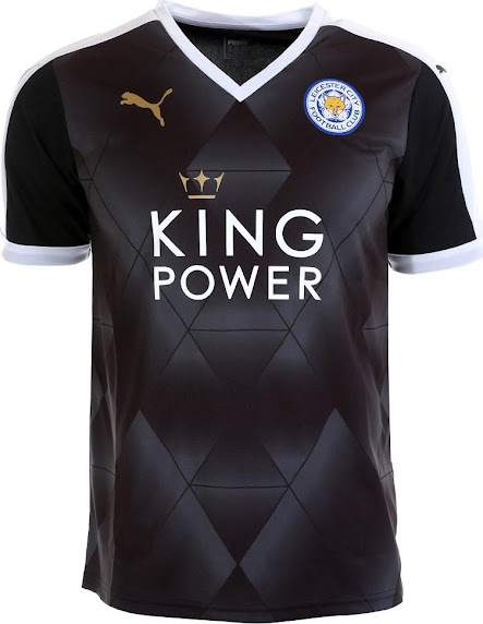 Puma produziert die neuen Leicester City 15-16 Trikots für die Rückkehr in die erste Liga. Goldene Akzente zieren die schwarzen und blauen Leicester City Trikots, während das Ausweich-Trikot weiß mit blauen Details ist.