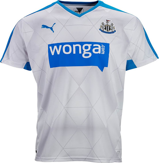 Während das schwarz / weiß gestreifte Newcastle 15-16 Heimtrikot und das hellgraue Auswärts-Trikot mit blauen Akzenten kommen, ist das Newcastle United 15-16 Ausweich-Trikot dunkelblau mit einer pink / weißen Schärpe.