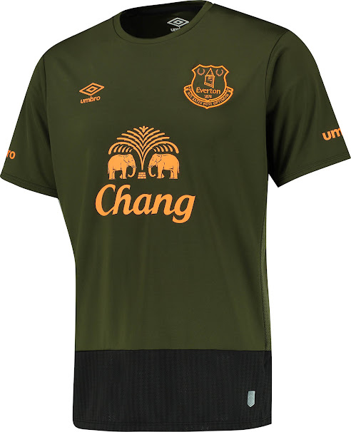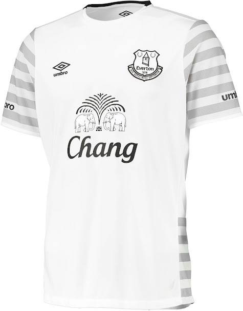 Evertons 15-16 Trikots ragen mit dem grün / orangen Ausweich-Trikot wirklich heraus, während die weiteren Trikots in Blau und Weiß eher traditionell gehalten sind.